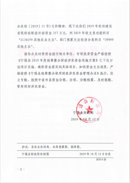 關于下達2019年農田建設省級財政配套補助資金的通知