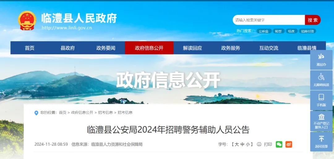 湖南省常德市臨澧縣公安局公開招聘警務輔助人員14名優先招聘退役軍人烈士配偶和子女報名時間2024年12月9日11日