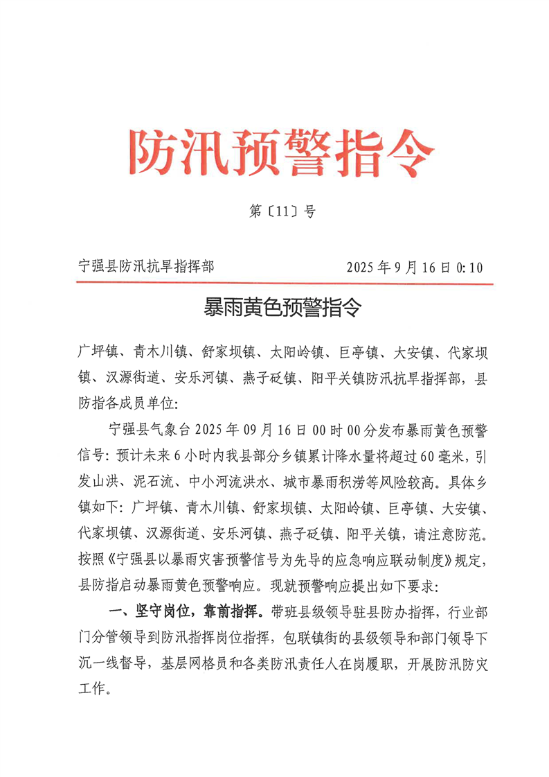 暴雨黃色預警指令第[11]期