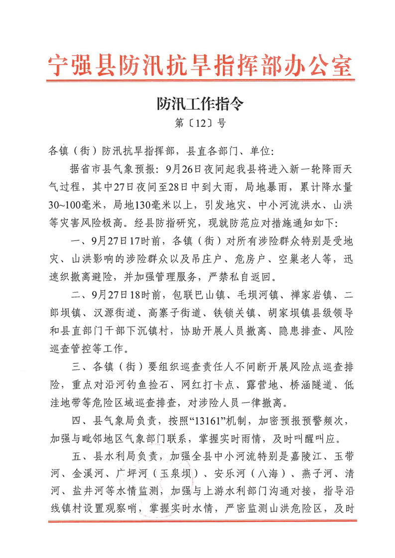 防汛工作指令第〔12〕號