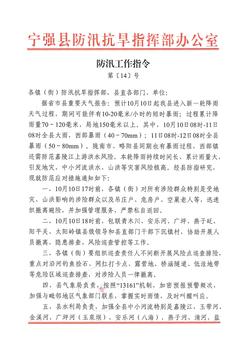 防汛工作指令第〔14〕號