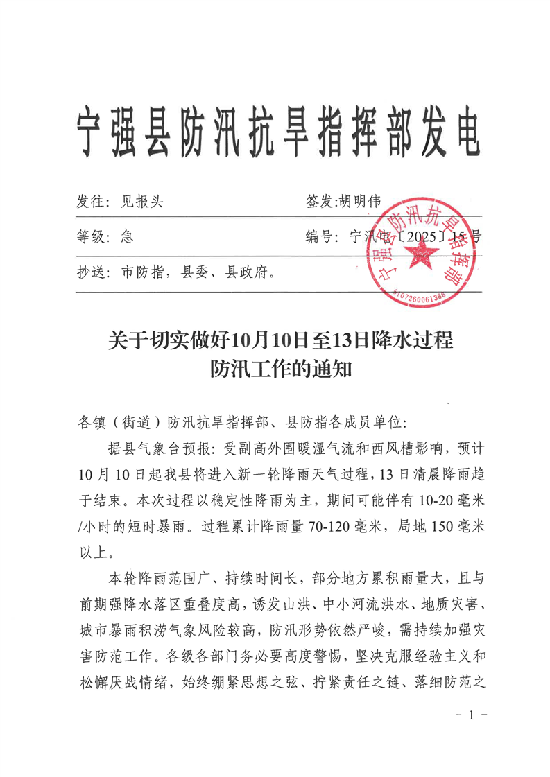 關于切實做好10月10日至13日降水過程防汛工作的通知