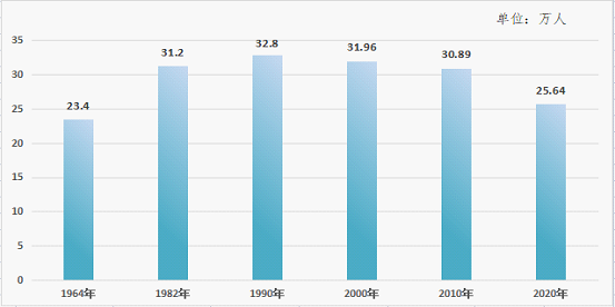 全縣常住人口與2010年第六次全國人口普查的308885人相比,減少52512人,下降17.0%。年平均增長率為-1.85%