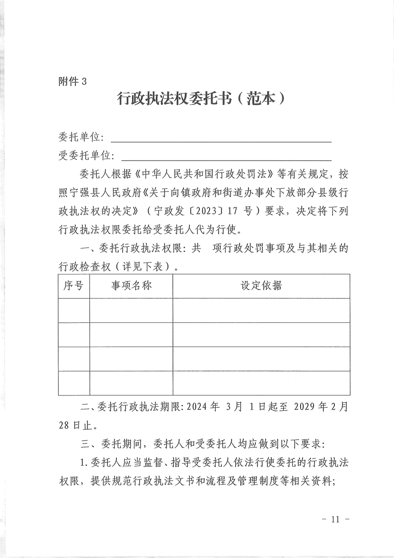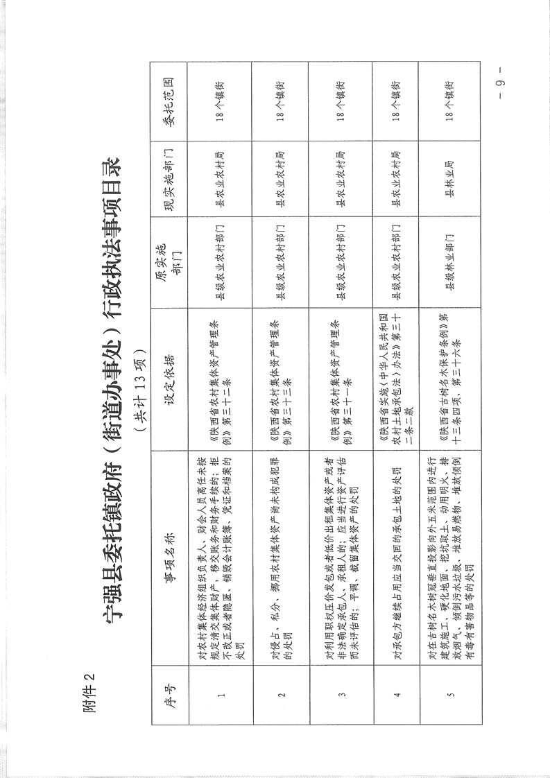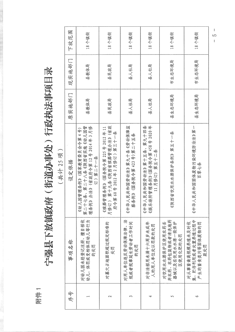 寧強縣人民政府關于向鎮政府和街道辦事處下放部分縣級行政執法權的決定