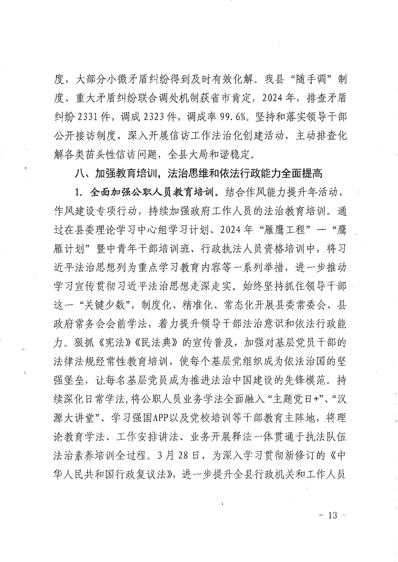關于2024年度法治政府建設工作的報告